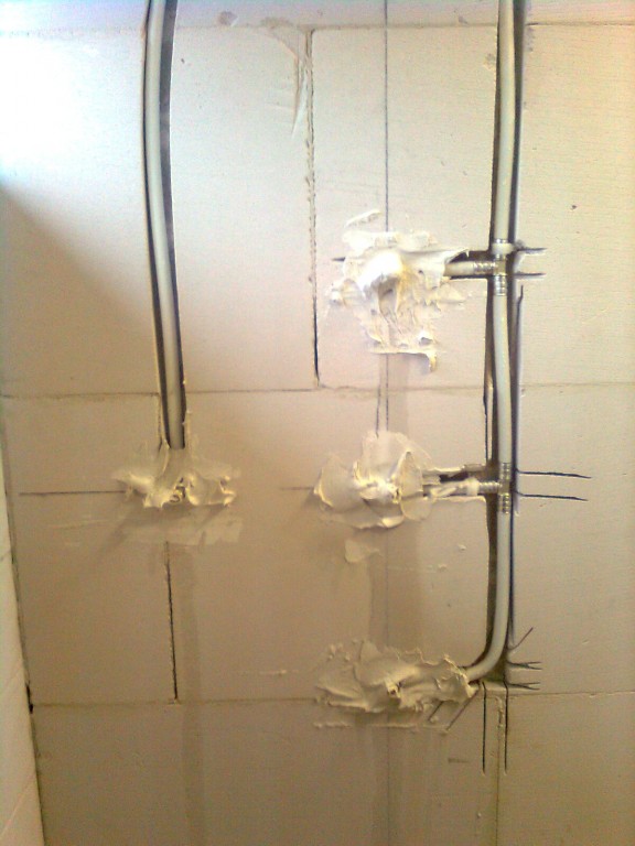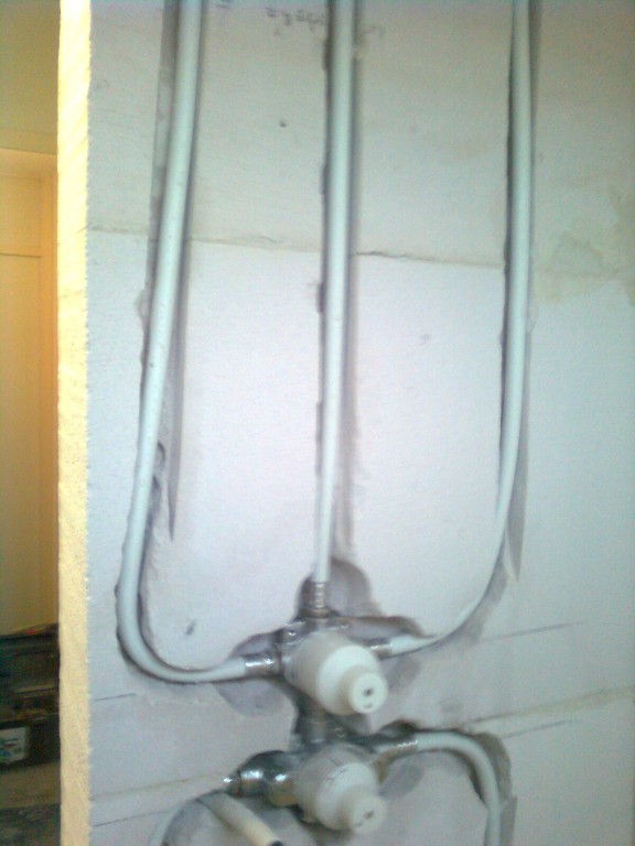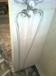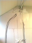 badkamer voorzien van bad, douche , toilet, wasmeubel , tegelwerk en stuckwerk boven tegels